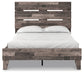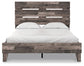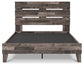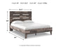 Streamlined design and a stunning finish come together in one simply extraordinary bed. This queen panel bed is sure to impress with platform styling and a rich brown finish over replicated pine grain texture. Its mid-century profile is a nod to the past, while the updated finish keeps it solidly in the present.