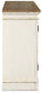 Serve up a French country-inspired feast for the eyes with this dining room server. Unique elements include cabinet storage beautified with decorative fretwork over mirrored glass and a doubly charming two-tone aesthetic pairing a chipped white with a distressed wood finished top.