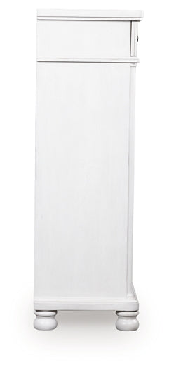 | Details | Made with hardwood solids, veneers and MDF substrates, Rubbed antiqued white finish, Metal hardware with pewter-tone finish, 5 smooth-gliding drawers with fully finished interiors, French/English dovetail construction and heavy-duty ball-bearing side glides, Top drawer felt lined | |